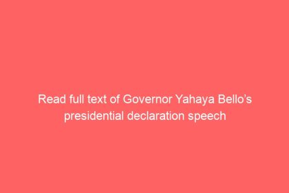 Read full text of Governor Yahaya Bello’s presidential declaration speech below. BEING…