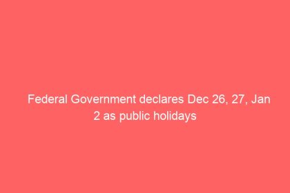 Federal Government declares Dec 26, 27, Jan 2 as public holidays