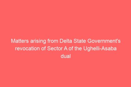 Matters arising from Delta State Government’s revocation of Sector A of the Ughelli-Asaba dual carriageway