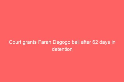 Court grants Farah Dagogo bail after 62 days in detention The Rivers…