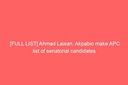 Ahmad Lawan, Akpabio make APC list of senatorial candidates The All Progressive…