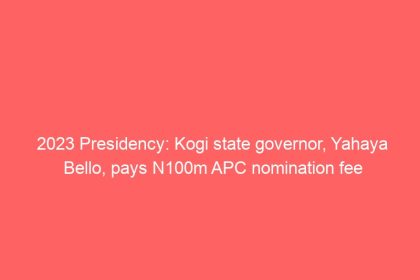 2023 Presidency: Kogi state governor, Yahaya Bello, pays N100m APC nomination fee