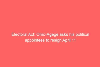 Electoral Act: Omo-Agege asks his political appointees to resign April 11