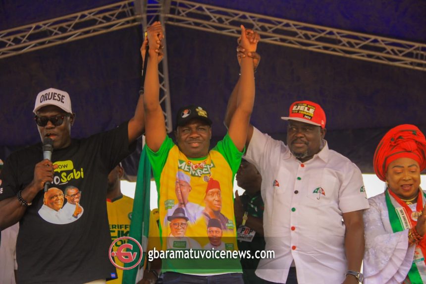 Supporters of Hon. Emomotimi Dennis Guwor, Member representing Warri South West Constituency in the Delta State House of Assembly on Wednesday, at the State’s Peoples Democratic Party (PDP) campaign rally held at Ogbe-Ijoh, proved that he is not just the people’s choice but the most preferred candidate to represent the good people of Warri South West Constituency.