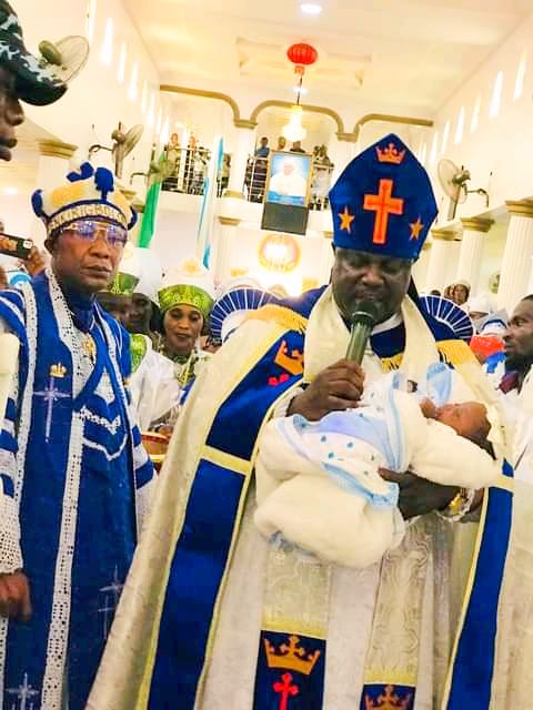The second has to do with child dedication by no other than the King of Zion himself, General Overseer and Miyenkirigbolomowei II of Zion Mission and Cherubim and Seraphim Church of Zion International Inc., His Holiness, Rt. Revd (Dr.) Epistle Princewill Isaiah Jemine (JP), Grand Commander of the Order of Aladura (GCOA), celebrates his baby dedication.