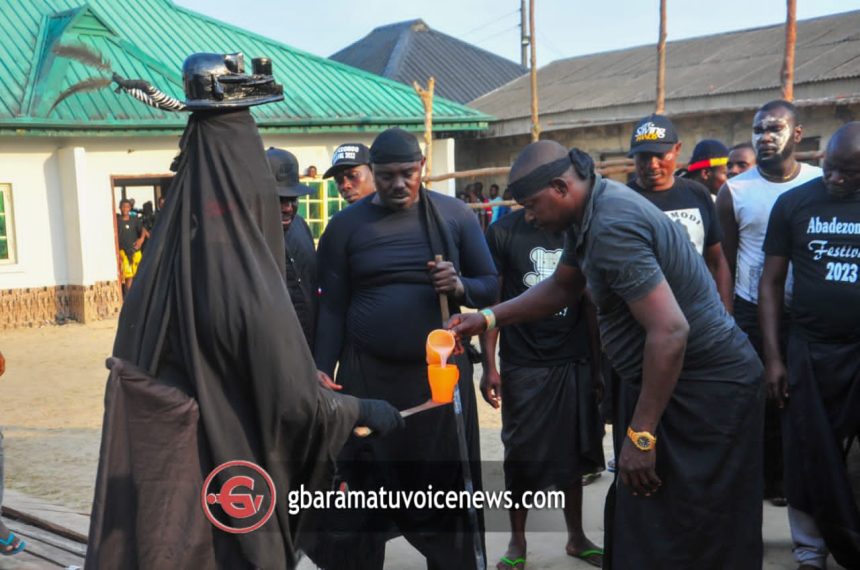 Giving insight as to how the Abadezongo deity and its celebration came about. Chief Simon Pukon Elex; the Bebefiyewei of Iduwini Kingdom, during an exclusive interview with GbaramatuVoice, explained that the founder was Korkiyorko, a fisherman. He noted that the man encountered Abadezongo deity while on his fishing expedition on the sea.