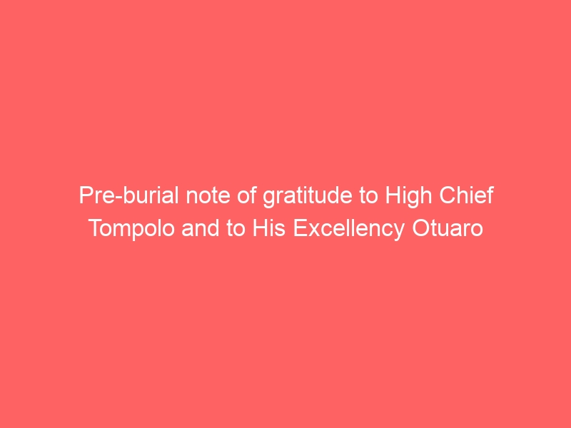 PRE-BURIAL NOTE OF GRATITUDE TO HIGH CHIEF TOMPOLO AND TO HIS EXCELLENCY OTUARO