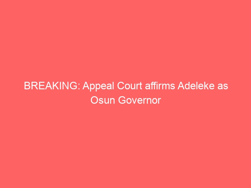 The Court of Appeal Abuja has set aside the decision of the Osun State Governorship tribunal, and has upheld the Governorship of senator Ademola Adeleke.