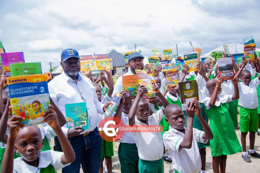Chief Jeffrey explained, “The project is a two-in-one project: the installation of over 40 solar street lights in Benikrukru community and the distribution of these study materials. The street lights were installed and commissioned by the Former Governor of Delta State, Sen. Ifeanyi Arthur Okowa sometime last year.”