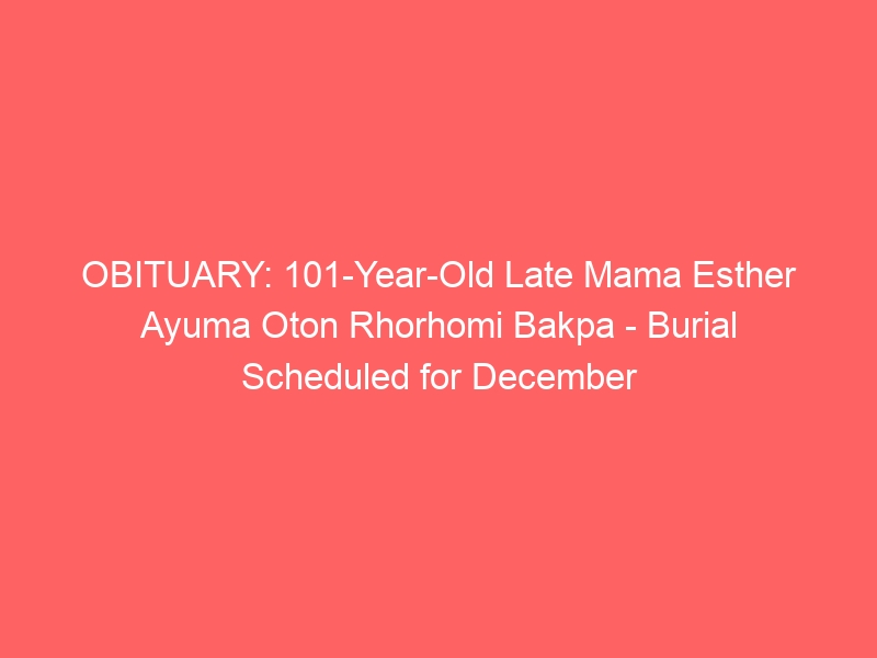 OBITUARY: 101-Year-Old Late Mama Esther Ayuma Oton Rhorhomi Bakpa – Burial Scheduled for December 1st in Oporoza