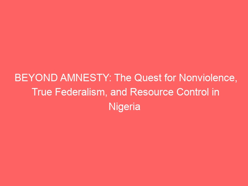 BEYOND AMNESTY: The Quest for Nonviolence, True Federalism, and Resource Control in Nigeria