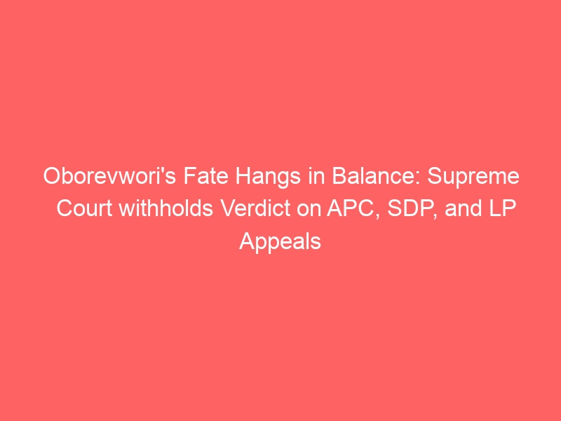 The Supreme Court has reserved judgment on the appeals by the All Progressives Congress candidate, Social Democratic Party, and Labour Party and their candidates in the Delta state governorship election.