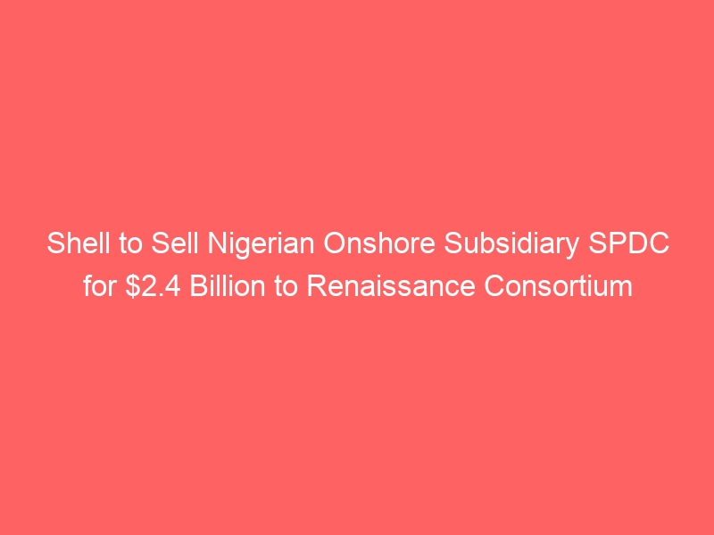 Shell to Sell Nigerian Onshore Subsidiary SPDC for $2.4 Billion to Renaissance Consortium