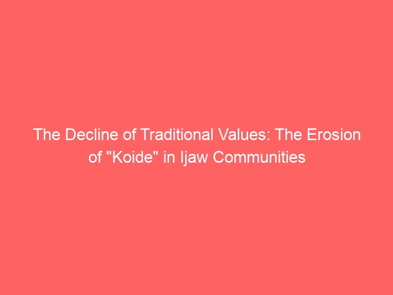 The consequences of this decline are profound, as the bond between generations weakens and the mutual respect that once defined Ijaw society diminishes. Without the practice of “Koide” to reinforce the hierarchy and interconnectedness of community members, social cohesion is compromised.
