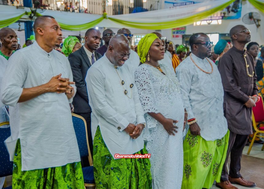 Rt. Hon. Emomotimi Guwor, Speaker of the Delta State House of Assembly, and Chief Dennis Otuaro PhD, the Administrator of the Presidential Amnesty Programme, were among the distinguished personalities who attended the Annual Izon Thanksgiving Celebration at the Redeemed Christian Church of God (RCCG), Beautiful Gate Mega Parish in Warri, Delta State.