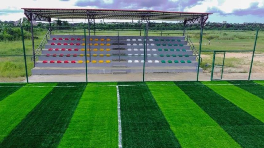 Rt. Hon. Julius Pondi, the member representing Burutu Federal Constituency, has completed a new mini pitch in Torugbene community, Burutu Local Government Area, Delta State. The mini pitch, equipped with modern facilities, a well-maintained playing surface, and seating areas for spectators, is specifically designed to host various sporting activities, with a focus on football.