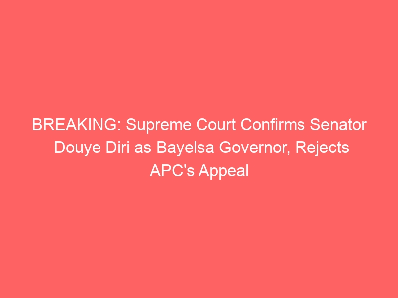 The Supreme Court has confirmed Senator Douye Diri’s election as the Governor of Bayelsa State. In a decisive judgment delivered on Friday, the apex court dismissed the appeal filed by Timipre Sylva, the governorship candidate of the All Progressives Congress (APC).