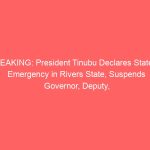 Tinubu made the announcement during his nationwide broadcast on Tuesday, March 18, 2025, citing the continued political crisis in Rivers and the failure of previous efforts to restore stability. He expressed deep concern over the unresolved tensions in the state, stating that decisive action was necessary to prevent further deterioration of governance and security.