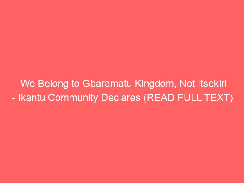 From the above, we wish to categorically inform the general public, Local, State, and Federal Government and the International Community that Ikantu is an ljaw Community in Gbaramatu Kingdom and is never, was never and will never be part of Itsekiri ethnic nationality.