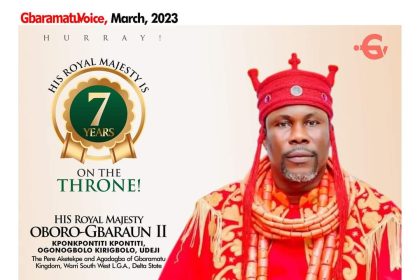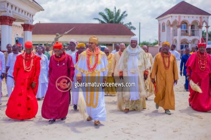 Merry in palace as great Gbaramatu king, Oboro-Gbaraun II marks 7th coronation…