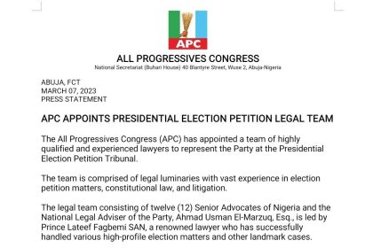 APC Constitutes 13-man Presidential Election Legal Team The All Progressives Congress (APC)…