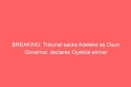 BREAKING: Tribunal sacks Adeleke as Osun Governor, declares Oyetola winner. The Osun…