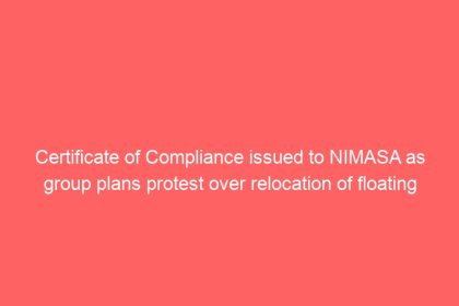 Certificate of Compliance issued to NIMASA as group plans protest over relocation of floating dockyard