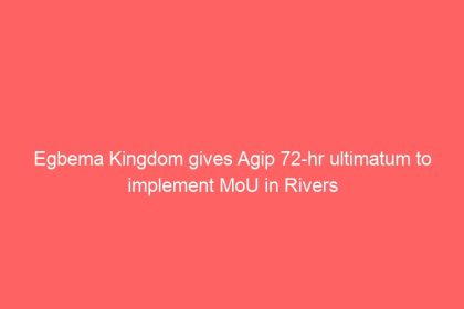 Egbema Kingdom gives Agip 72-hr ultimatum to implement MoU in Rivers