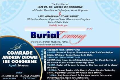 The families of Late Pa. Dr. Alfred Ise Ogegbene of Perebiri Quarters…