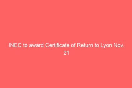 INEC to award Certificate of Return to Lyon Nov. 21