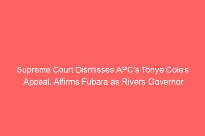 Supreme Court Dismisses APC’s Tonye Cole’s Appeal, Affirms Fubara as Rivers Governor