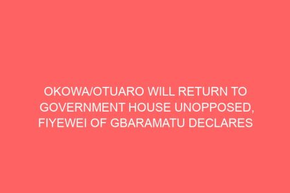 OKOWA/OTUARO WILL RETURN TO GOVERNMENT HOUSE UNOPPOSED, FIYEWEI OF GBARAMATU DECLARES