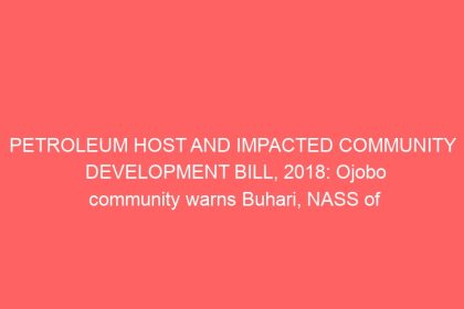 PETROLEUM HOST AND IMPACTED COMMUNITY DEVELOPMENT BILL, 2018: Ojobo community warns Buhari, NASS of impending crisis