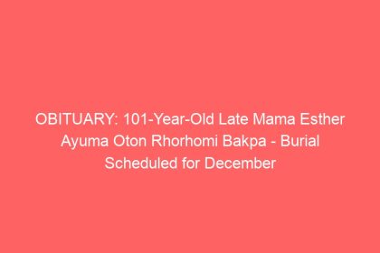 OBITUARY: 101-Year-Old Late Mama Esther Ayuma Oton Rhorhomi Bakpa – Burial Scheduled for December 1st in Oporoza