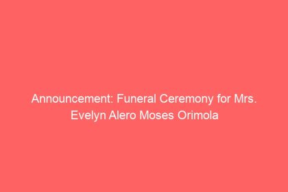 Announcement: Funeral Ceremony for Mrs. Evelyn Alero Moses Orimola