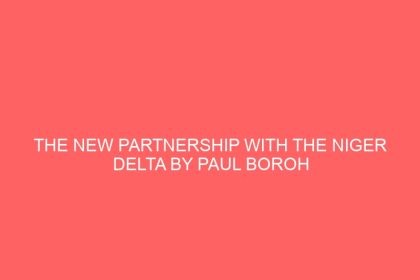 THE NEW PARTNERSHIP WITH THE NIGER DELTA BY PAUL BOROH