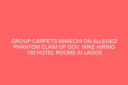 GROUP CARPETS AMAECHI ON ALLEGED PHANTOM CLAIM OF GOV. WIKE HIRING 150 HOTEL ROOMS IN LAGOS