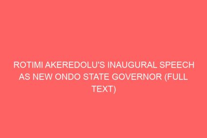 ROTIMI AKEREDOLU’S INAUGURAL SPEECH AS NEW ONDO STATE GOVERNOR (FULL TEXT)