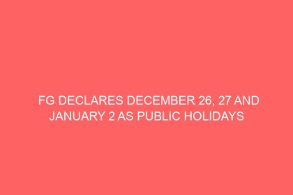 FG DECLARES DECEMBER 26, 27 AND JANUARY 2 AS PUBLIC HOLIDAYS