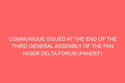 COMMUNIQUE ISSUED AT THE END OF THE THIRD GENERAL ASSEMBLY OF THE PAN NIGER DELTA FORUM (PANDEF)