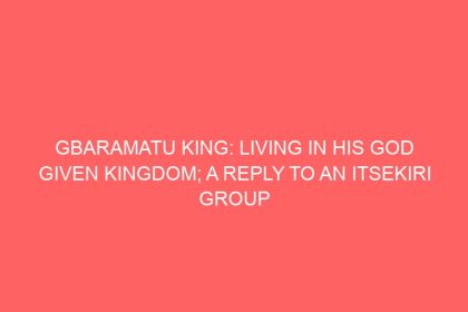 GBARAMATU KING: LIVING IN HIS GOD GIVEN KINGDOM; A REPLY TO AN ITSEKIRI GROUP