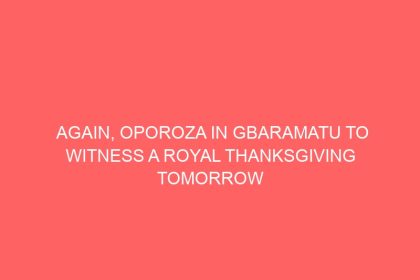 AGAIN, OPOROZA IN GBARAMATU TO WITNESS A ROYAL THANKSGIVING TOMORROW