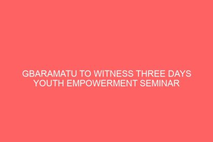 GBARAMATU TO WITNESS THREE DAYS YOUTH EMPOWERMENT SEMINAR
