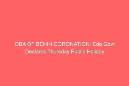 OBA OF BENIN CORONATION: Edo Govt Declares Thursday Public Holiday