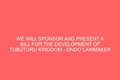 WE WILL SPONSOR AND PRESENT A BILL FOR THE DEVELOPMENT OF TUBUTORU KINGDOM – ONDO LAWMAKER