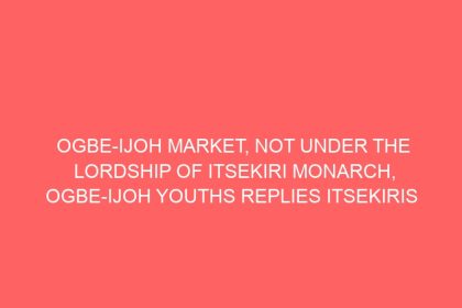 OGBE-IJOH MARKET, NOT UNDER THE LORDSHIP OF ITSEKIRI MONARCH, OGBE-IJOH YOUTHS REPLIES ITSEKIRIS