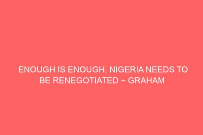 ENOUGH IS ENOUGH, NIGERIA NEEDS TO BE RENEGOTIATED ~ GRAHAM
