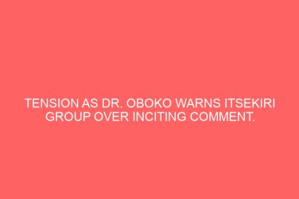 TENSION AS DR. OBOKO WARNS ITSEKIRI GROUP OVER INCITING COMMENT.
