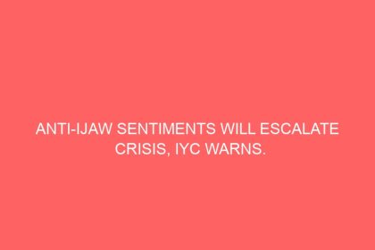ANTI-IJAW SENTIMENTS WILL ESCALATE CRISIS, IYC WARNS.