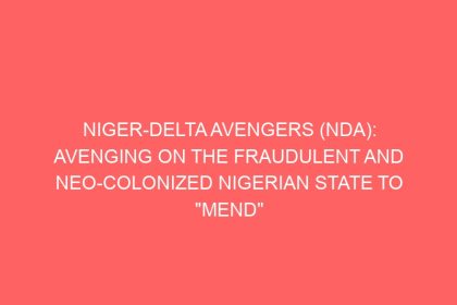 NIGER-DELTA AVENGERS (NDA): AVENGING ON THE FRAUDULENT AND NEO-COLONIZED NIGERIAN STATE TO “MEND” THE INJUSTICE DONE THE NIGER-DELTA OVER THE DECADES IN ORDER TO BRING ABOUT FREEDOM.